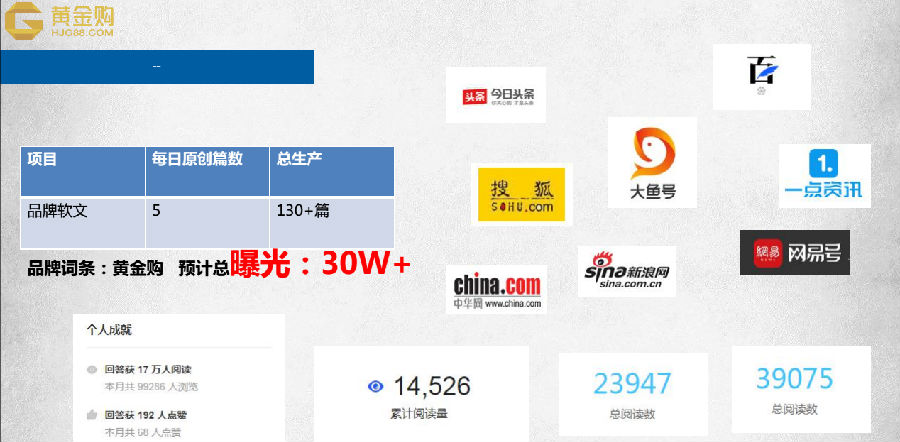 深圳金易购珠宝网络科技有限公司,构建了一站式黄金珠宝消费投资平台——黄金购。想快速推广,提高黄金购品牌知名度和平台入金量,因此需要找代运营帮助完成目标。