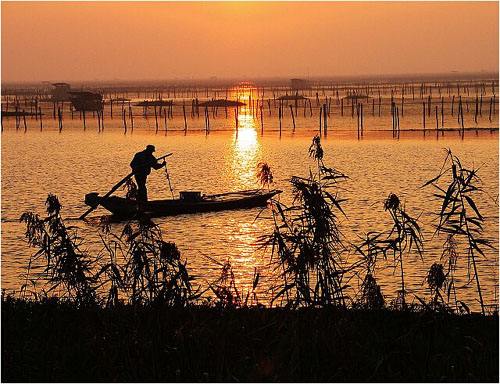 10月中旬的阴雨天让总水面18万亩的阳澄湖看起来更加茫茫无边。顾敏杰在湖边有间阳光房茶室,门外湖水清冽,迂回曲折的木质廊桥上有游客在自拍。这片水域给他和其他当地人带来了财富,其所产的大闸蟹闻名全国。