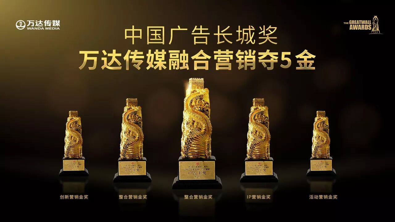 (今年中国国际广告节上,万达传媒凭借与长安汽车、长城汽车、光明莫斯利安、果倍爽、摩摩哒等广告主合作的多项案例,斩获长城奖创新营销金奖、整合营销金奖、IP营销金奖、活动营销金奖等五项金奖)