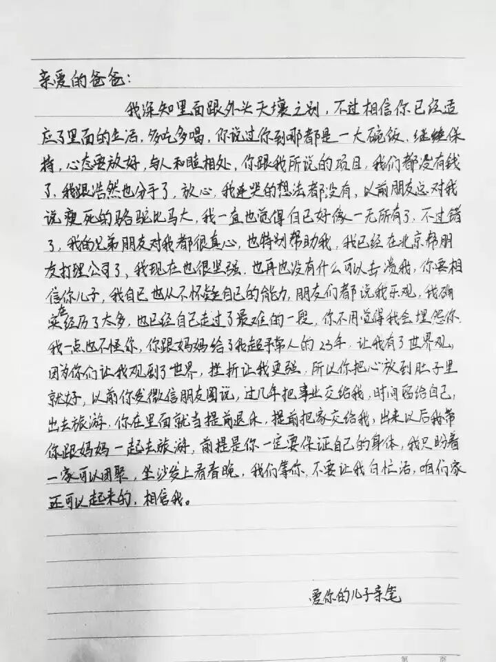 我进了看守所后,发现里面的嫌疑犯并不都是坏人,他们会安慰我鼓励我。在看守所我们天天训练、打坐,很多事倒想开了。事情已经发生了,我不来承担谁来承担?爸妈都进去了,我不去抗这个家,谁来抗呢?没有办法,不想做也得做。
