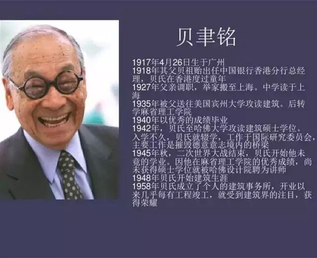 美国国家艺术馆、肯尼迪图书馆、香港中银大厦、法国卢浮宫金字塔,直到家乡的苏州博物馆,建筑大师贝聿铭的作品每一件都是经典之作。