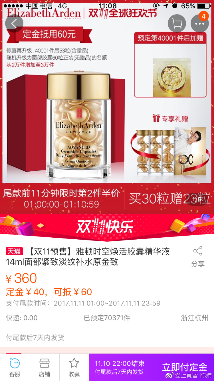 双11售价360元,优惠如下: