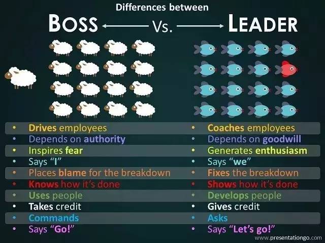 我见过不少所谓的领导只是发号施令的boss,不是帮助人成长的leader。