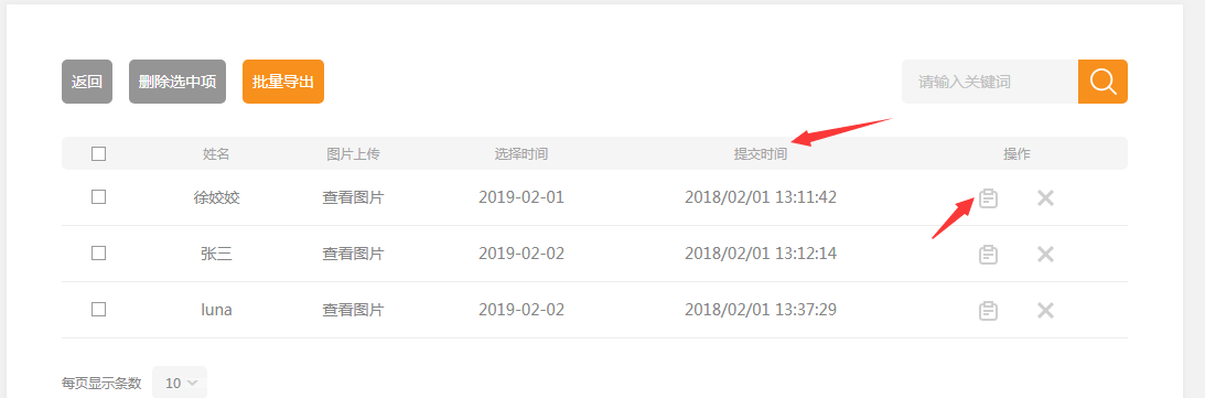 ⑧.在表单详细数据页面,增加了提交时间,并且可以查看详细的表单提交内容