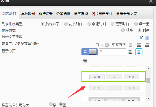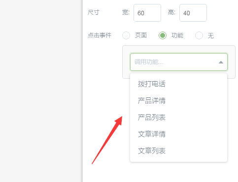 如果选择的是产品列表,下方同样出现链接和选择数据,但是需要链接到带有产品列表的页面,选择数据将会显示产品分类,用户可以选择显示指定的某些分类